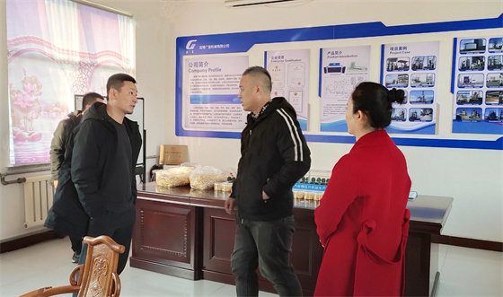 山西平遙客戶蒞臨廣富機械有限公司 考察蒸汽玉米壓片機項目