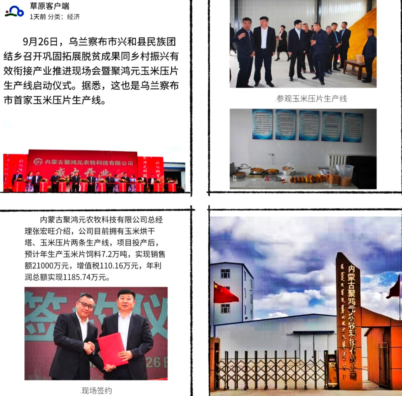 廣富在線:熱烈祝賀烏蘭察布市首家蒸汽玉米壓片機(jī)生產(chǎn)線啟動(dòng)!
