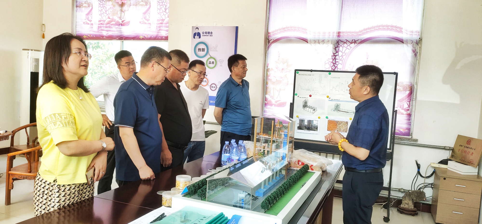 馬總帶領(lǐng)考察人員參觀了蒸汽玉米壓片機(jī)機(jī)械制造車間,其間馬總向考察人員介紹了本公司的基本情況和蒸汽玉米壓片機(jī)的發(fā)展歷程,與考察團(tuán)一起探討了玉米壓片機(jī)技術(shù)創(chuàng)新與質(zhì)量發(fā)展,以及市場(chǎng)拓展和未來(lái)前景。